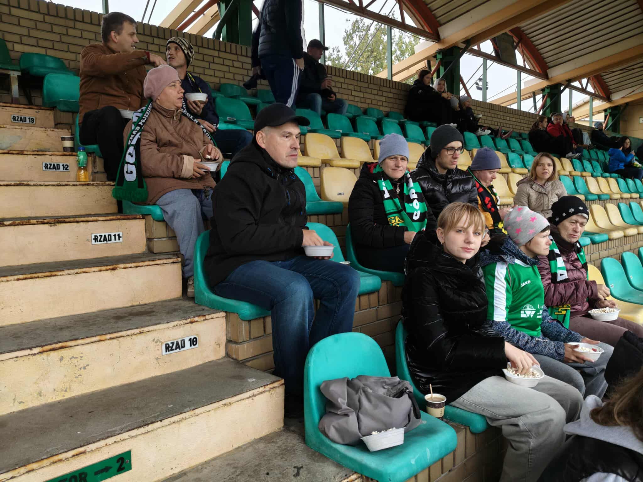 Na zaproszenie pań z Górnika, wybraliśmy się na mecz do Łęcznej. Było prawie sobotnie południe jak Górnik Łęczna kobiet podejmował na własnym stadionie drużynę Czarni Sosnowiec. Pomimo remisu 0-0 emocji nie brakowało. Wiele powodów do radości mieli uczestnicy, bo widać, że dla nich taki wyjazd to fantastyczna sprawa, szczególnie że usiedliśmy razem z kibicami zarzucającymi doping przez cały mecz i włączyliśmy się do wspólnego śpiewania. Było dość chłodno ale gorąca kawa, herbata, kiełbaska i popcorn ogrzewały i umilały kibicowanie. Jedynym minusem według uczestników był fakt iż w meczu nie strzelili chociaż jednego gola.